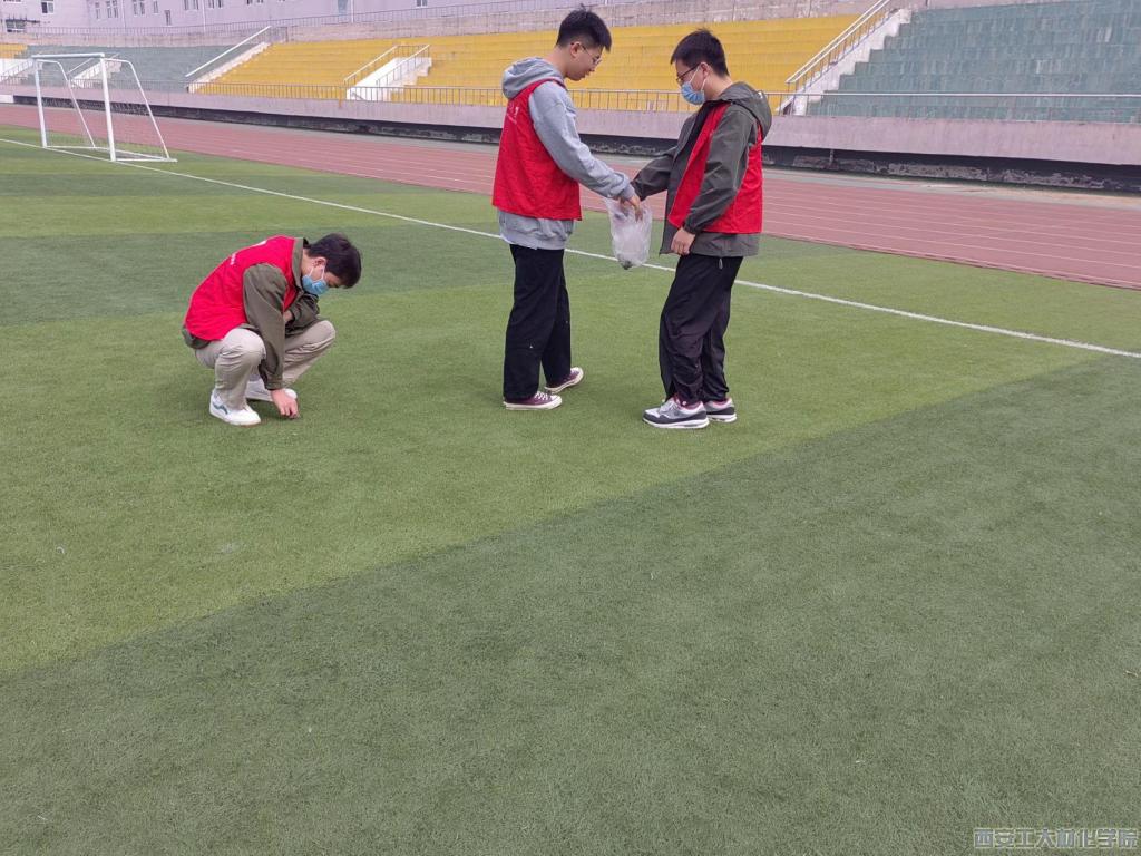 活动伊始,工作人员组织志愿者签到,并对本次活动做出整体规划。活动中,志愿者对田径场的座位、草坪以及跑道的垃圾进行拾捡清扫;收集装袋后统一处理。志愿者认真专注,无一懈怠,积极领悟志愿服务无私奉献的精神内涵。学生干部李春瑶表示,希望能通过校园志愿活动引导更多同学树立环保意识,增强保护环境的主人翁意识。活动结束后工作人员组织志愿者统一签退并合影留念。