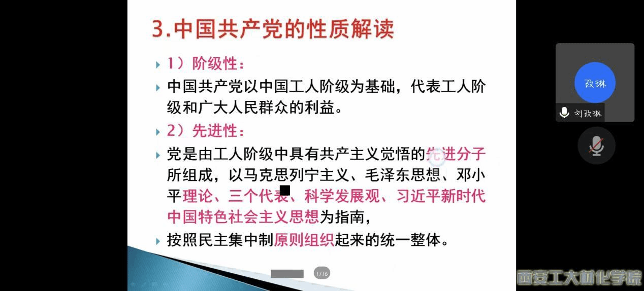 培训伊始,刘改琳以三个问题“为什么要入党”“为什么要上党课”“如何加入中国共产党”切入话题,从党的性质的定义与来源,政党的性质判断等方面展开介绍。接下来,刘老师对中、美、俄三个大国的政党分别进行介绍,对比得出中国共产党所领导的社会主义道路的优越性;然后对中国共产党的性质进行解读,中国共产党具有阶级性和先进性,是中国特色社会主义事业的领导核心。培训最后,刘老师阐述了党课学习的性质和意义,并对全体学员提出了具体的要求。至此,本次培训圆满结束。