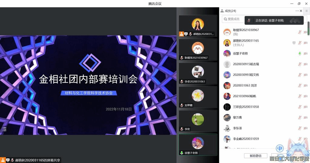 科学技术协会在2022年11月18日晚在线上组织召开以“金相组织,带你领略微观世界的美”为主题的讲座。讲座由金相社团指导老师刘翠霞主讲,科协指导老师徐慧子主持,金相社团全体成员参会。
