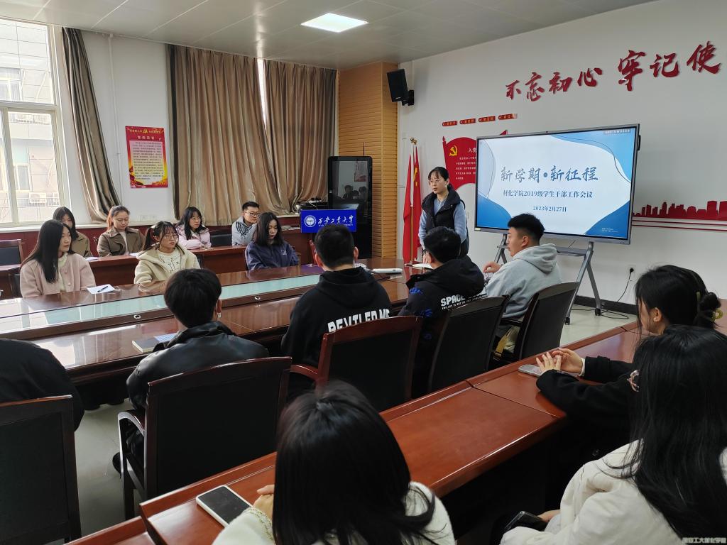 2019级于2023年2月27日上午9时召开学生干部工作会议。本次会议由2019级辅导员乔娜老师,材化学院2019级全体学生干部参加。