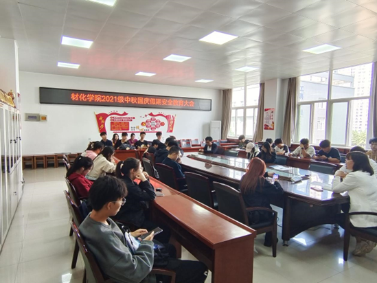 于9月27日中午在工3-410召开中秋国庆假期安全教育大会,本次大会由2021级辅导员刘强珺主持,会议通过“线上腾讯会议+线下学生干部”召开,2021级全体同学参加本次大会。