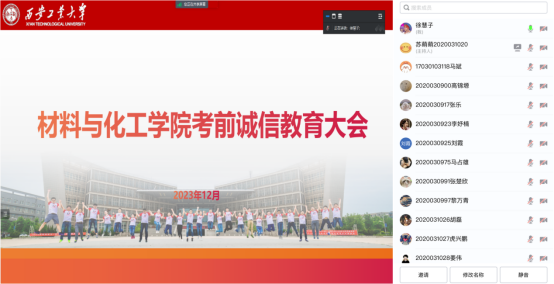 2020级于12月14日召开考前诚信大会线上会议,会议由辅导员徐慧子主持。
