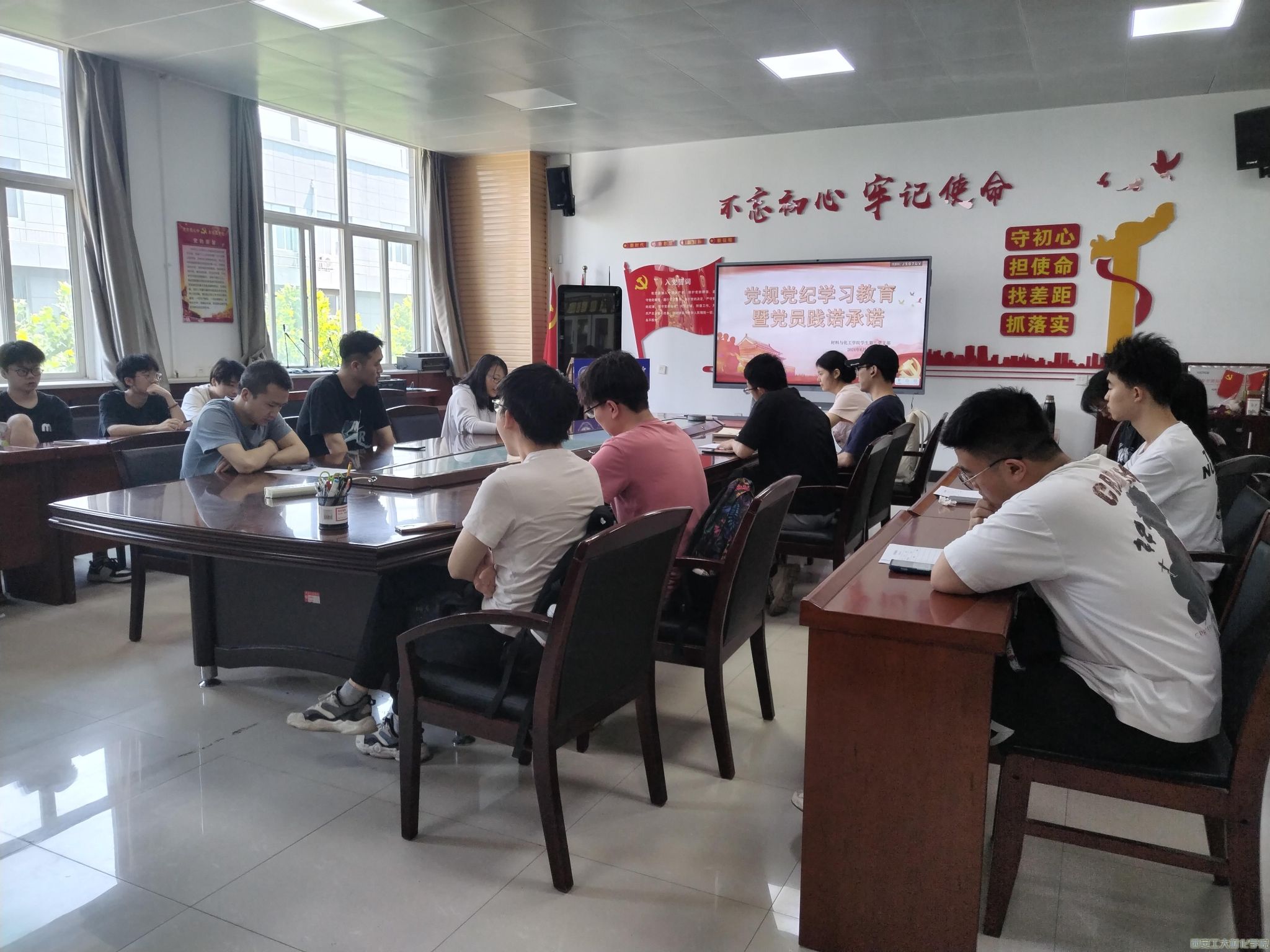 为充分发挥基层党组织的战斗堡垒作用,增强党员们的责任感和使命感,2024年6月5日,材化学院学生第二党支部在工3-410开展党纪学习和党员承诺践诺活动。活动由学生支部书记张瑞红主持,全体党员参加。