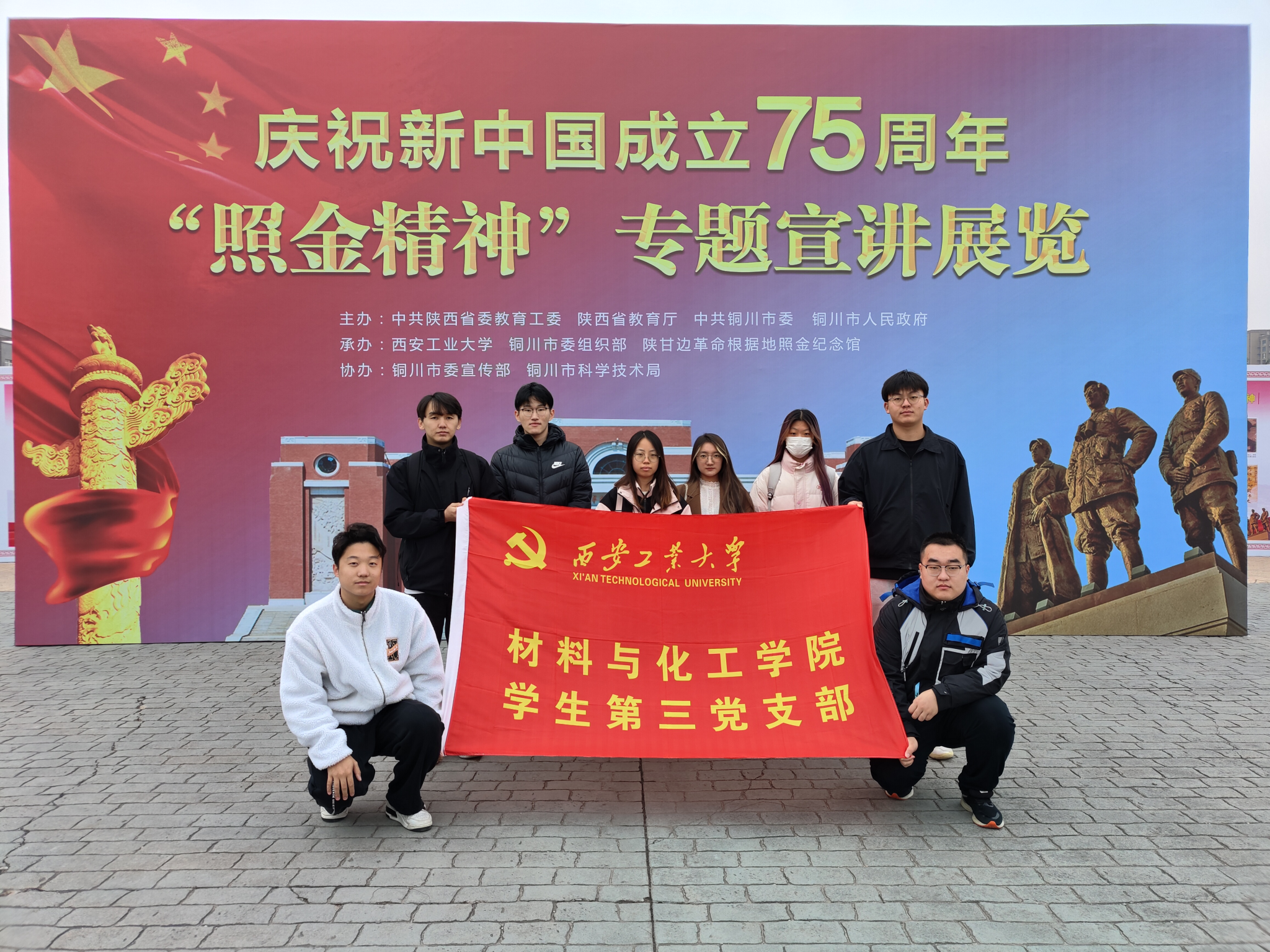 学生第三党支部于经纬广场参观学习庆祝新中国成立75周年“照金精神”专题展览。支部10余名党员代表参加。