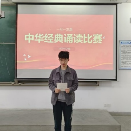会议伊始,团支书徐凯聘简述了本次经典诵读活动的目的和意识,组织学生用诵读的方式弘扬中华优秀文化,引导学生了解中华文化和各族文化之间的联系。接着,班级学生司含章、李张萌、唐宇轩、张瑞婷等同学诵读了经典诗歌,讲述了诗歌的内涵及对生活的有效指导,让同学们深刻的感受到了中华传统文化的内涵和魅力。最后,团支书徐凯聘对次活动进行总结,希望同学们多读经典诗歌,去领悟诗人心中的情感,引导同学们追求梦想,勇敢拼搏。