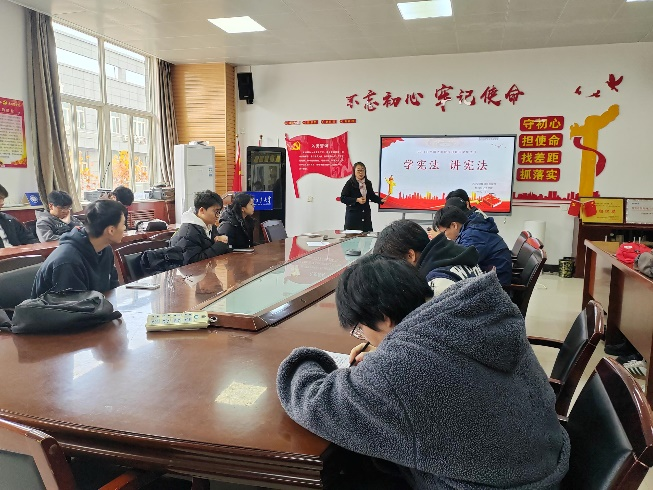 在工3-410召开2022级学习宪法教育会。会议由辅导员张瑞红主持,2022级50余名学生骨干参加。