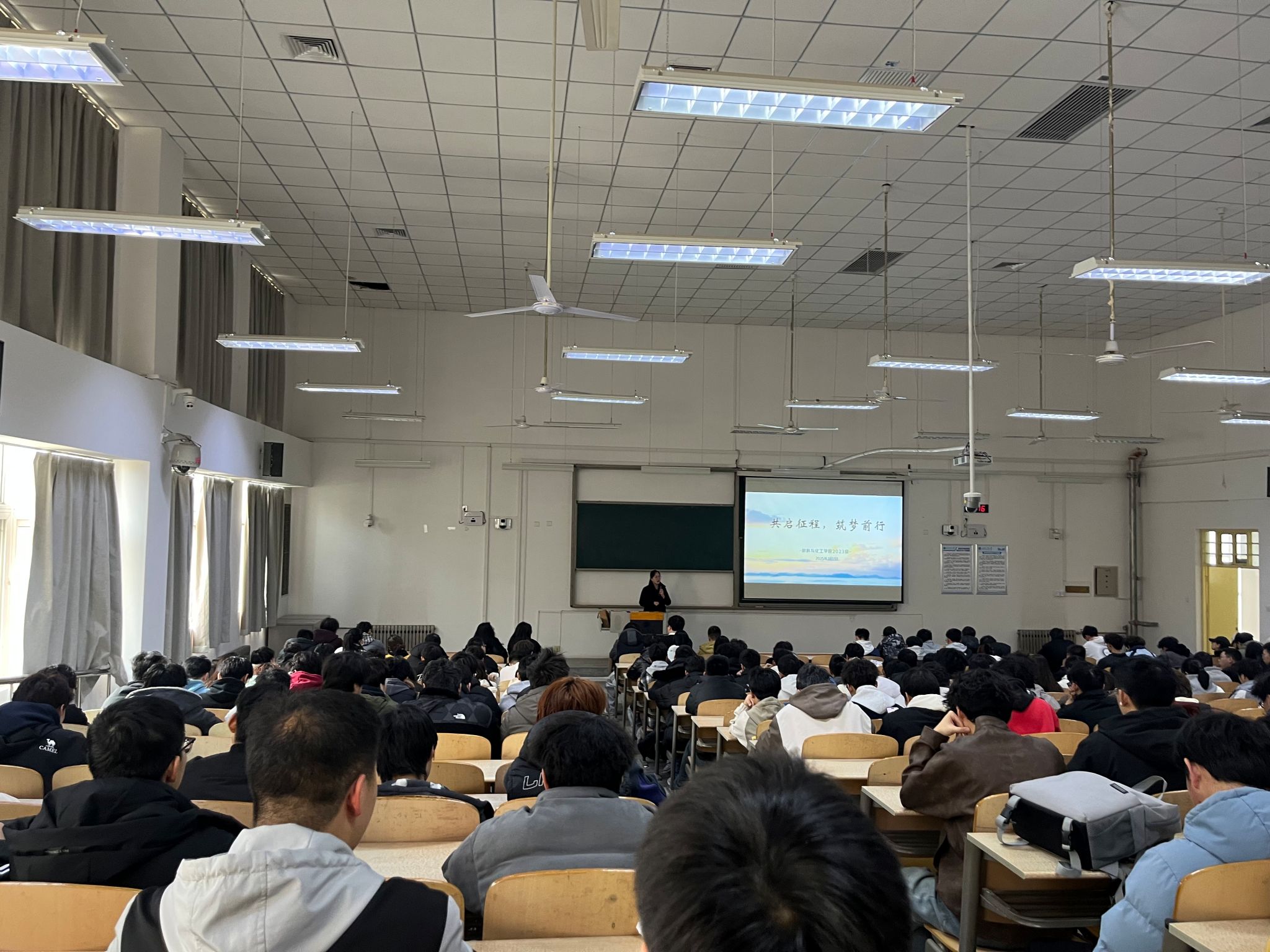 会上,辅导员乔娜首先回顾了上学期同学们在校各方面取得的成绩,对表现优秀的班级和个人提出表扬,激励大家在新学期延续良好势头。针对新学期教学安排,辅导员详细解读了课程设置、专业培养方案以及学分要求,强调了学业规划的重要性,鼓励同学们合理安排时间,积极探索专业领域知识。同时,也着重强调了校园安全与纪律问题,涵盖人身财产安全、网络安全以及日常行为规范等,引导同学们树立安全意识,遵守校规校纪。在互动环节,同学们踊跃提问,就专业发展前景、考研就业方向、学科竞赛等问题进行交流,现场气氛热烈。
