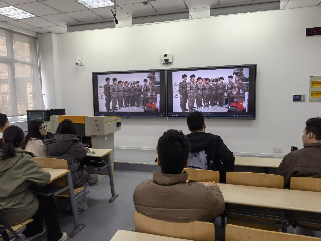 活动在嘹亮的《学习雷锋好榜样》歌声中拉开序幕。团支部书记韩诗钰以"传承雷锋精神 争做时代先锋"为题,通过雷锋事迹讲解、分享身边“雷锋式”榜样故事,引导学生深刻理解雷锋精神,雷锋精神是一种无私奉献、乐于助人、勤勉敬业、艰苦奋斗的精神,这种精神是我们民族宝贵的精神财富,也是新时代青年应该积极践行的重要品质。随后,同学们集体观看了雷锋纪录片,并发出"学雷锋志愿服务月"活动倡议,号召全体学生从身边小事做起,将雷锋精神融入日常。