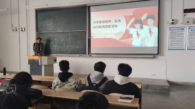 为深入学习贯彻二十大精神,进一步弘扬雷锋精神,传承中华民族优良传统,2025年3月12日,材化学院开展2022级开展了“传承雷锋精神,弘扬时代新风”主题观影活动,22030106班全体同学集体观看了经典电影《雷锋》,共同回顾了这位伟大战士的感人故事。