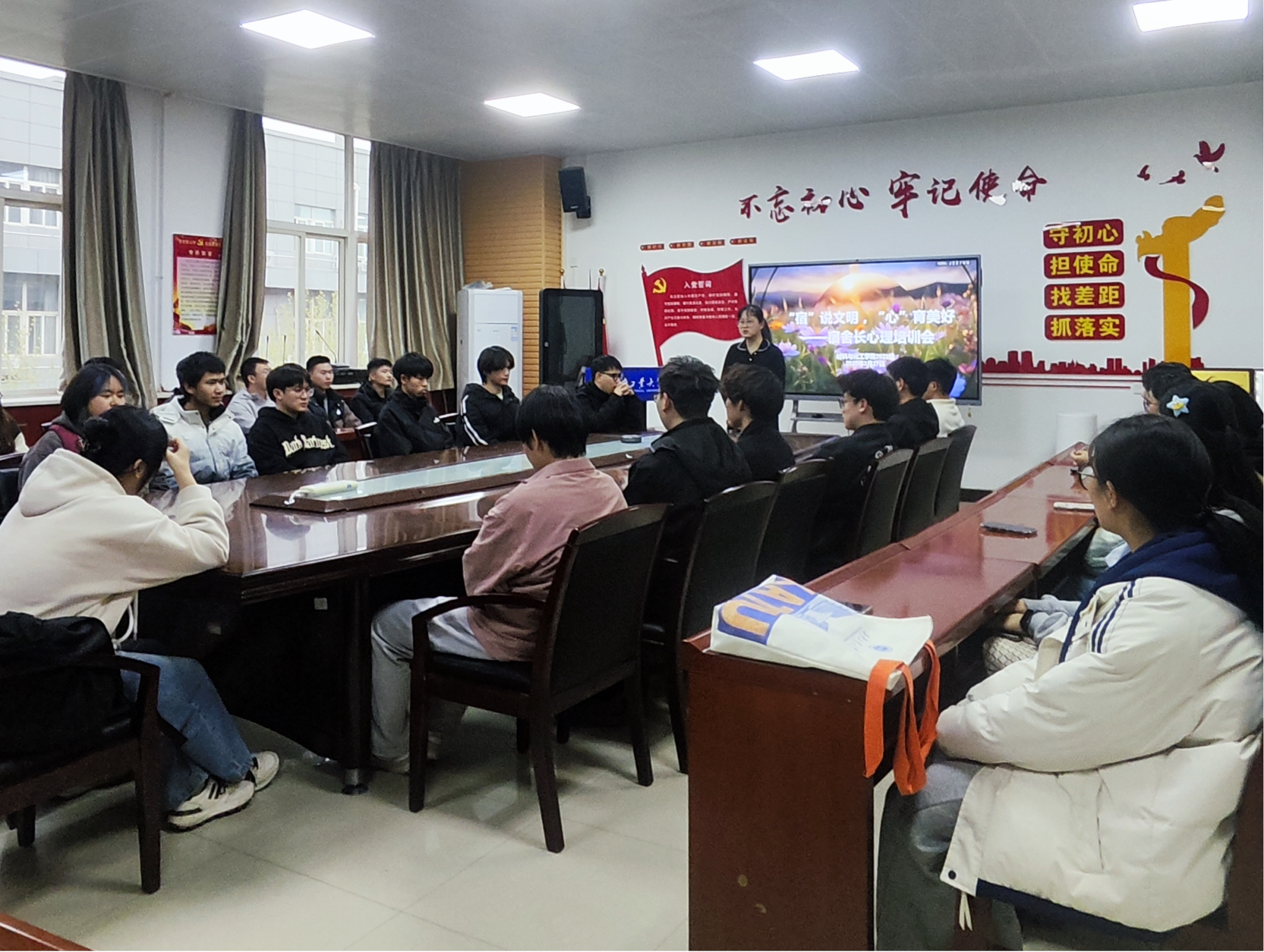2023级于工3-410召开了“‘宿’说文明,‘心’育美好”宿舍长心理工作培训会议。此次会议由2023级辅导员乔娜主持,2023级全体宿舍长参与。