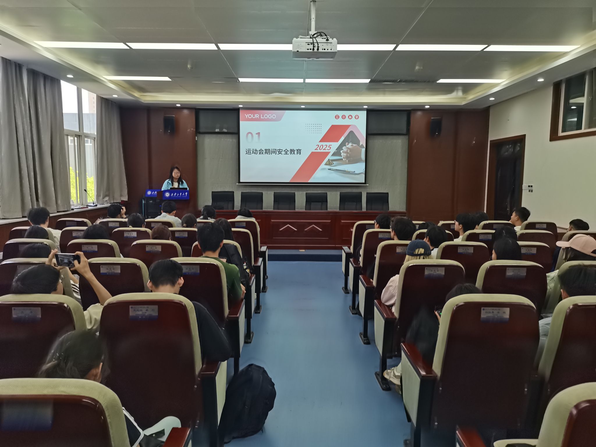 会上,辅导员围绕法制教育与校园安全知识主题开展宣讲,通过剖析典型案例,引导学生深化对法治精神与案例防范的认知,进一步强化自我保护意识和风险应对能力。同时,辅导员就运动会安全和注意事项进行详细说明。教育运动员要听从指挥,看台观众要按时到位,文明观赛,遵守秩序。提醒运动员做好赛前热身和赛后放松,参加运动会的学生弘扬好体育精神,发挥好自身实力,赛出好成绩。随后,辅导员就假期安全管理工作,明确要求全体学生在平台登记去向,返校后及时完成签到,确保行程有追溯,安全有保障。