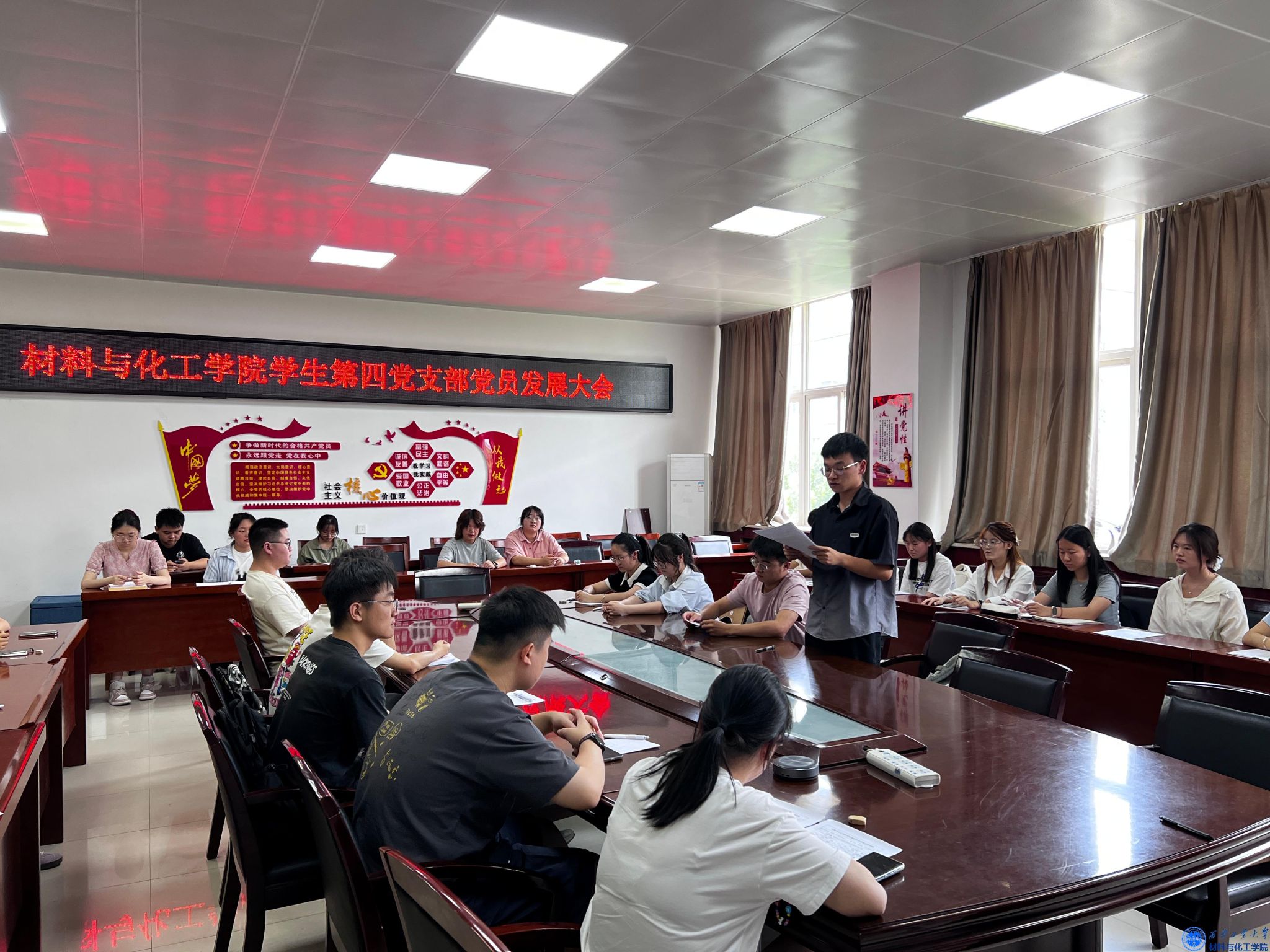 学生第四党支部召开党员发展大会,对郭婷婷等5名发展对象的入党申请进行审议与表决,支部全体党员和相关发展对象参与会议,会议由支部副书记冯鑫媛主持。