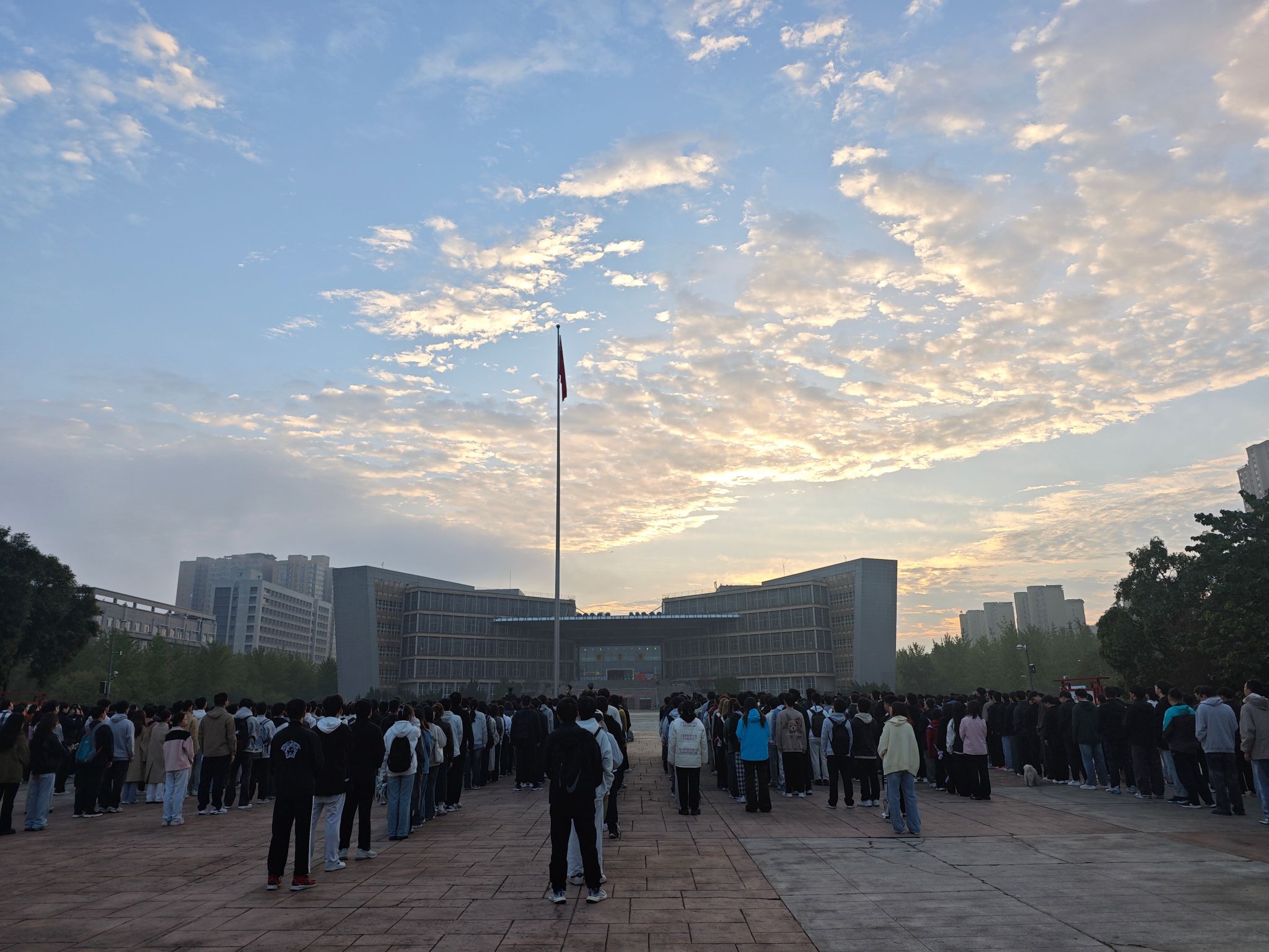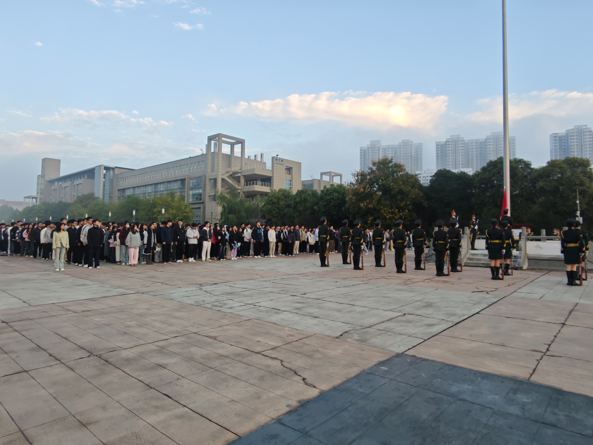 为厚植爱国情怀、凝聚青春力量,同人小说 700余名师生代表于10月13日清晨,在经纬广场参加升旗仪式。