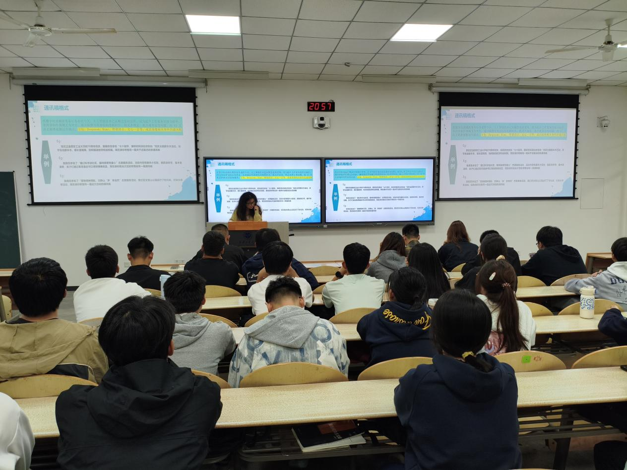 会议伊始,学生干部刘俊围绕通讯稿的基本概念展开讲解,系统介绍了通讯稿的作用、分类及其主要特征。随后,对通讯稿的结构与写作方法进行了详细解析,重点针对标题、首段、正文及结尾部分的撰写要点进行指导。培训过程中,同学们认真听讲、专注投入,积极回应现场提问,有效提升了培训的整体效率。在讲解结束后,会议还设置了格式纠正与实操练习环节,帮助同学们在实战中巩固所学内容,逐步提升写作能力。