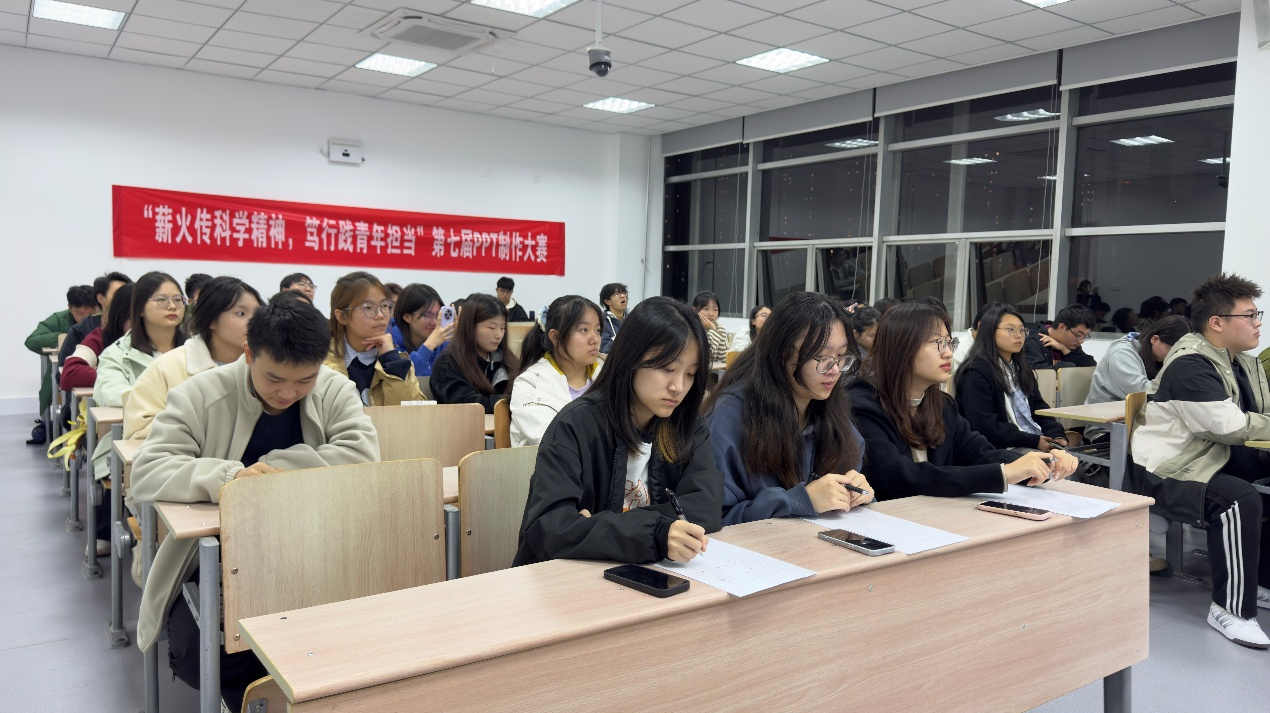 科学技术协会于教三-103举办“薪火传科学精神,笃行践青年担当”第七届PPT制作大赛。学院科协全体成员全程参与活动策划、组织与执行,保障赛事圆满落幕。