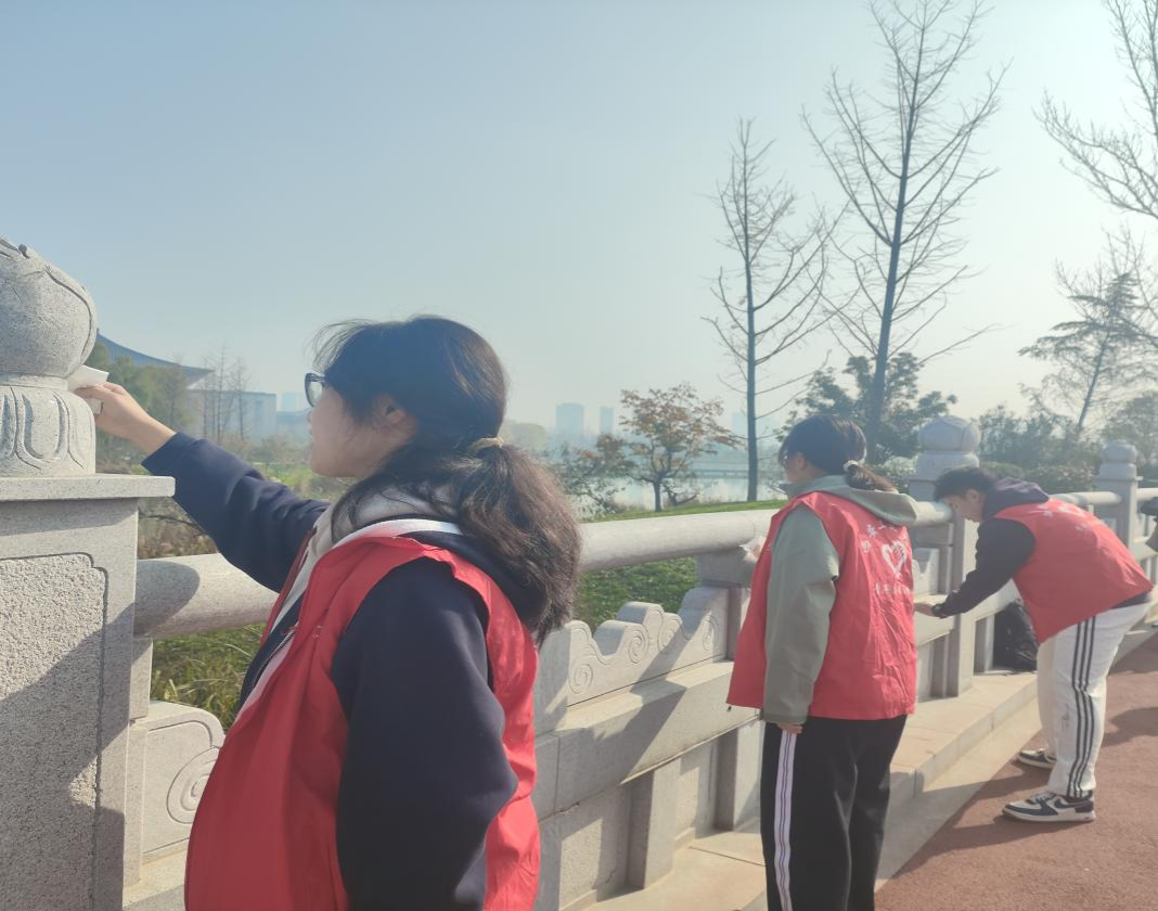 活动伊始,志愿者们身着统一的红色马甲,精神抖擞地集合在世博园指定区域。学生干部董俊杰强调了本次活动的意义与注意事项,鼓励大家以饱满的热情投入到志愿服务中。随后,志愿者们迅速分组,有的手持夹子和垃圾袋沿着园区主干道、景观带、湖泊周边拾捡散落的塑料瓶、纸巾、果皮、烟头等垃圾;有的化身“环保卫士”,在人流量多的地方向广大市民以及园区内其他志愿者讲解垃圾分类的重要性并宣传垃圾分类的相关知识,又通过问答活动加深大家对垃圾分类的了解,呼吁更多人加入“城市生态保卫战”的行列中来。交相辉映的志愿红与生态绿构成了秋天最亮丽的风景线。