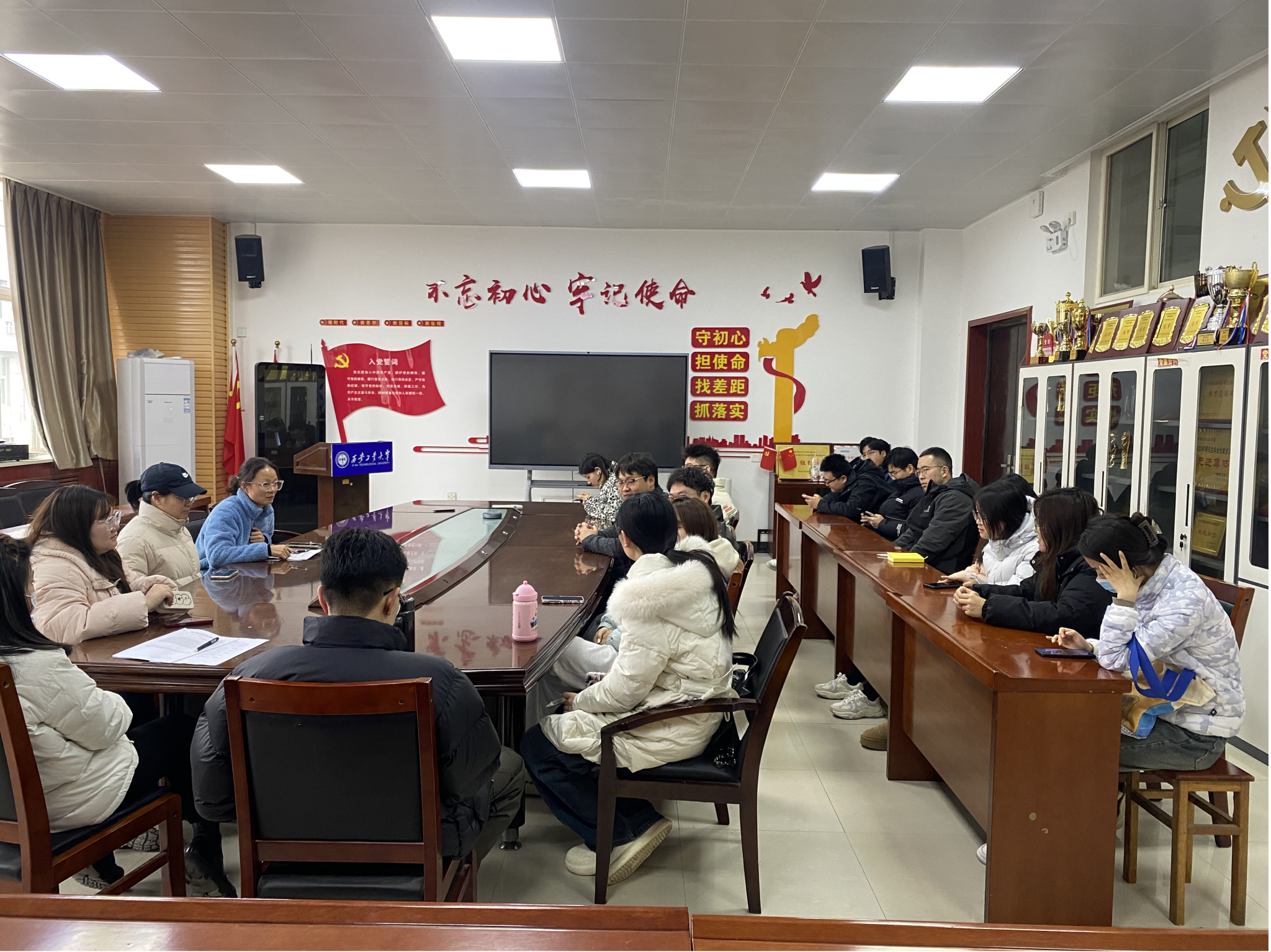 研究生辅导员胡娜结合学校春季学期研究生教育管理工作要求,对学院研究生工作在思想政治教育、学风建设、特色活动、日常管理等方面存在的不足进行了详细分析,她希望广大学生干部能够在工作中快速成长,为学院事业发展增活力、添动力,并对下阶段的工作提出了要求,一是明确角色定位,强化责任担当,做好师生的桥梁纽带;二是不断学习实践,强化能力锻造,提升工作水平,克服本领恐慌;三是守好安全底线,提高安全意识,做好安全工作的宣传员和践行者。