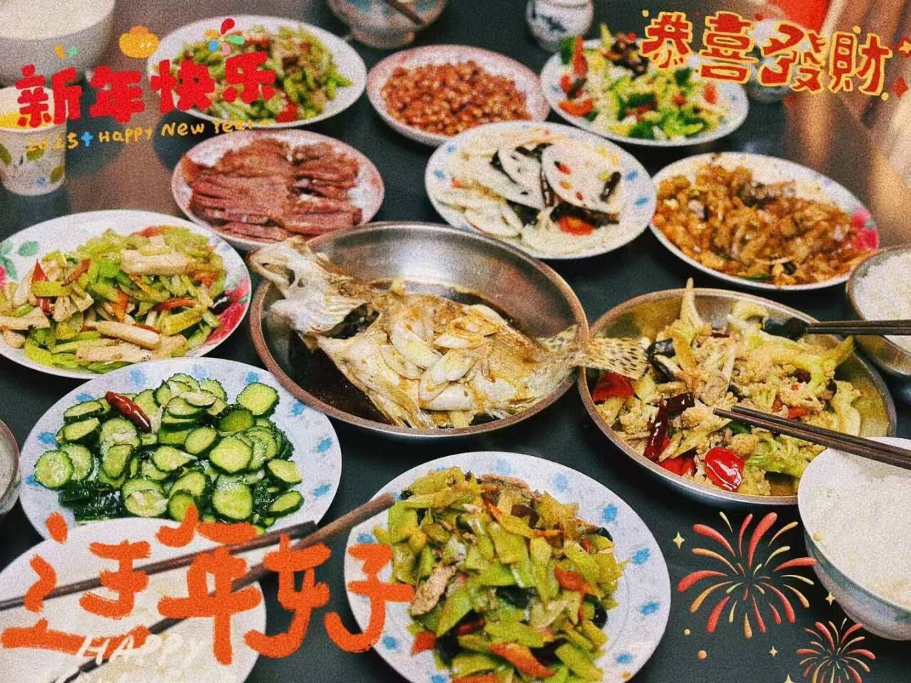 教职工们纷纷在微信群晒出自家精心准备的年夜饭,一道道色香味俱全的佳肴,承载着满满的幸福与祝福。红烧肉、清蒸鱼、饺子……每一道菜都蕴含着对生活的热爱和对新年的期待。大家在晒美食的同时,也用真挚的话语祝愿彼此在新的一年里身体健康、工作顺利、家庭幸福。