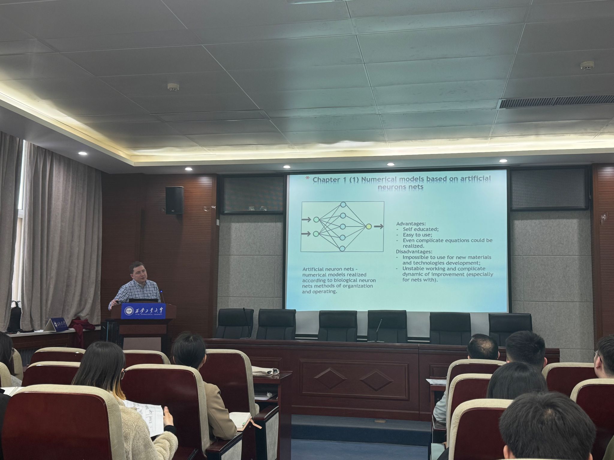 Anton Naumov教授给全院研究生作题为“Development of thermomechanical treatment parameters for pipeline and automotive steels thin sheet production using physical and numerical simulations technigues”的学术报告;并详细介绍了圣彼得堡彼得大帝理工大学办学历史、校园环境、学科设置、科研情况等;参会学生就申请信息、联系导师、研究方向等问题与Anton Naumov教授进行了深入交流。