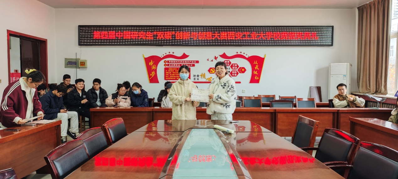 始终将研究生创新创业教育摆在突出位置,通过“赛教融合、赛研结合”模式,激励研究生把创新成果应用在实现“双碳”战略的生动实践中。她号召广大研究生以获奖团队为榜样,树立科技报国远大志向,在“双碳”赛道上奋勇争先,为美丽中国建设贡献西工青春力量。